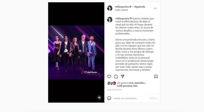 Acá el comunicado de Millaray Viera sobre su renuncia a Chilevisión