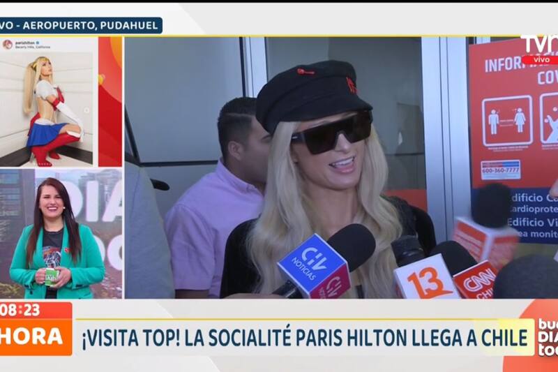 En esa línea, fue que en plena transmisión del matinal "Buenos Días a Todos", se mostró la mediática llegada de Paris Hilton al Aeropuerto Arturo Benítez. Según comentó la comunicadora que estaba haciendo el móvil, el momento llamó la atención puesto que ella salió un lugar común y corriente y no por la salida para artistas y famosos.