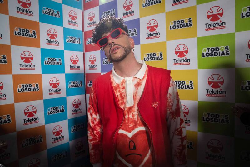 El humorista Stefan Kramer, como cada año, fue uno de los platos fuertes de la noche de cierre de la Teletón 2022, en el Estadio Nacional, hasta donde llegó caracterizado como el cantante puertorriqueño, Bad Bunny.