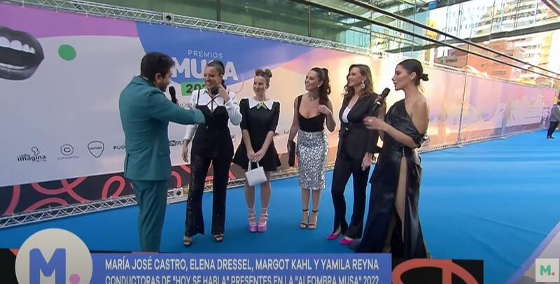 "Para nosotras es un honor estar hoy presentes como "Hoy se habla" con estas cuatro. Somos como las "Sex and the City" chilenas, así que estamos muy contentas. Muy honrada me siento de estar en esta entrega de premios chilena, de la música chilena, soy una gran amante de la música así que fascinada", expresó la argentina en su conversación con Gino Costa.