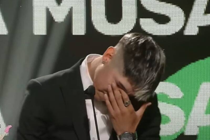 "Estoy muy nervioso. Muchas gracias primero que todo a mi equipo de trabajo, a JP mi manager, que sin él no hubiera sido posible", partió señalando para terminar por quebrarse tras posicionarse como el ganador de una de las categorías más importantes del año.