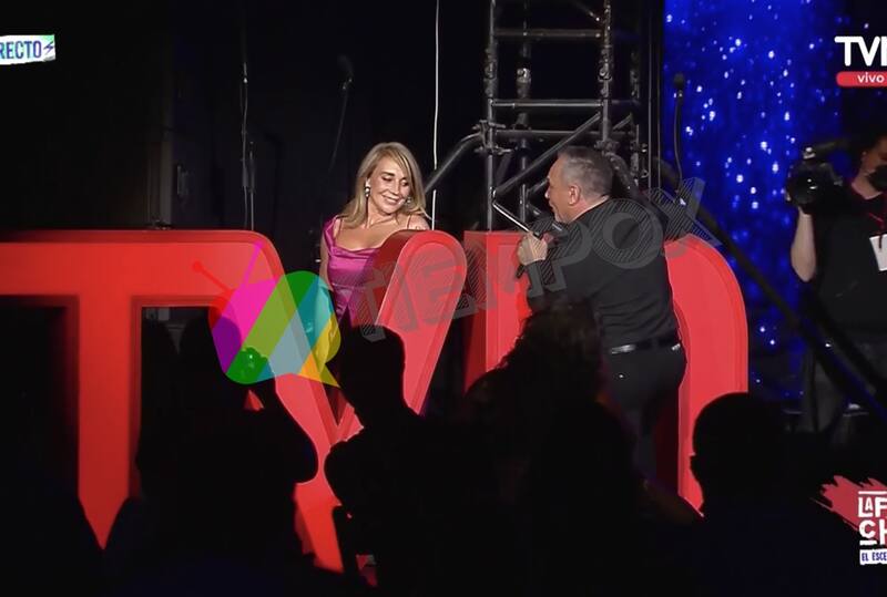 Lucho Jara se acercó desde el escenario hacia donde estaba Karen Doggenweiler y ella comenzó a realizar algunos pasos de baile al ritmo de la música. Al finalizar la canción, ambos se abrazaron.