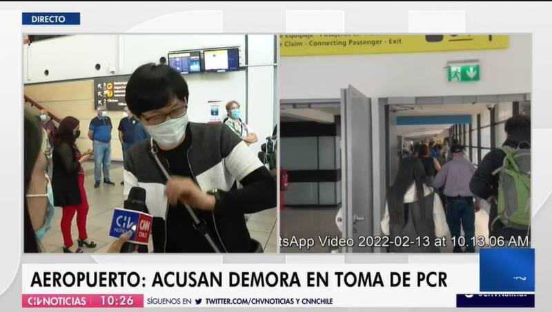 Todo partió cuando estaban cubriendo el colapso de los PCR en el aeropuerto, donde también se suspendieron varios vuelos hacia Iquique, cuando de pronto apareció un pasajero proveniente de Asia, al cual partieron de forma inmediata a entrevistar.
