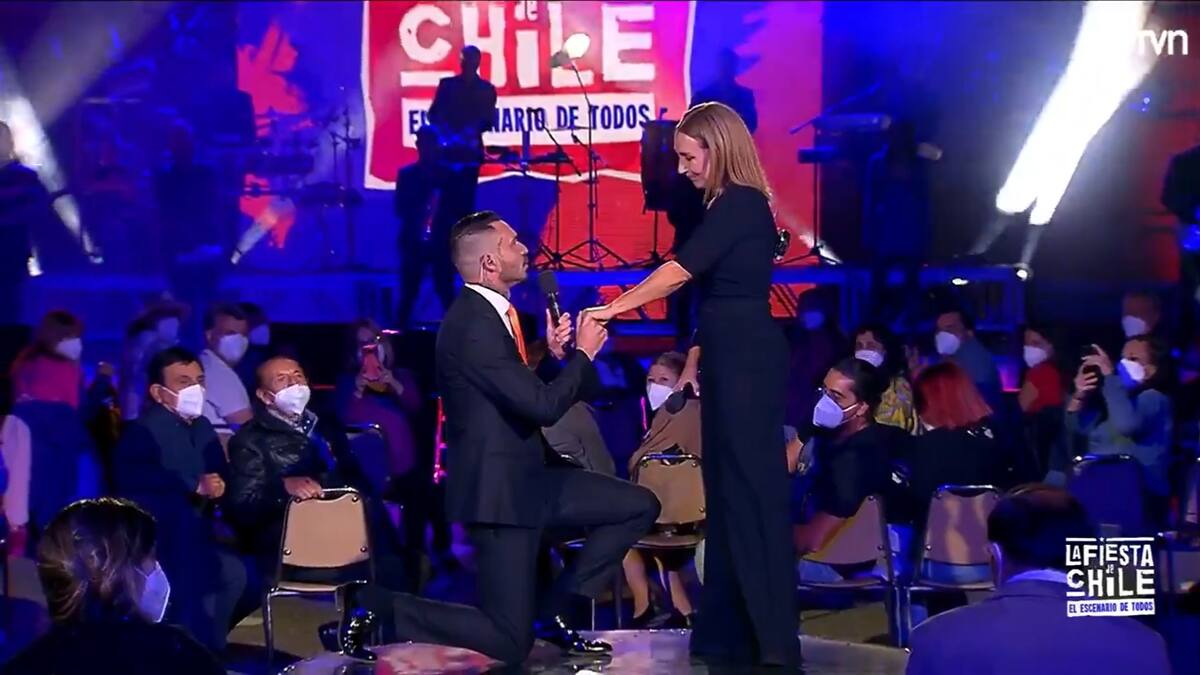 Mauricio Pinilla y Karen Doggenweiler dieron este jueves el inicio al festival de verano de TVN, "La Fiesta de Chile". La animadora presentó a su compañero y el exfutbolista, de inmediato aprovechó el espacio para agradecerle y arrodillarse ante ella.