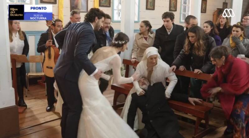 Justo cuando el cura iba a comenzar los votos, y viendo la cara de duda de su hija, el personaje de Francisco Reyes sufrió los síntomas de un infarto, interrumpiendo la boda producto de la preocupación de todos los presentes.