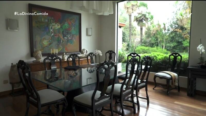 Lo primero que presentó Helénia Melán fue la gigantesca mesa, un gran número de sillas y las diferentes obras de arte que conforman el comedor del hogar.