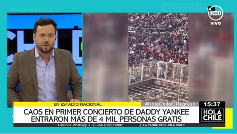 "Todo se vio desbordado, la fuerza pública y la organización. Gente que había comprado su entrada se quedó sin ver el concierto, o que pagó por verlo en una ubicación y la vieron en otra", relató el conductor de Hola Chile al inicio del programa.