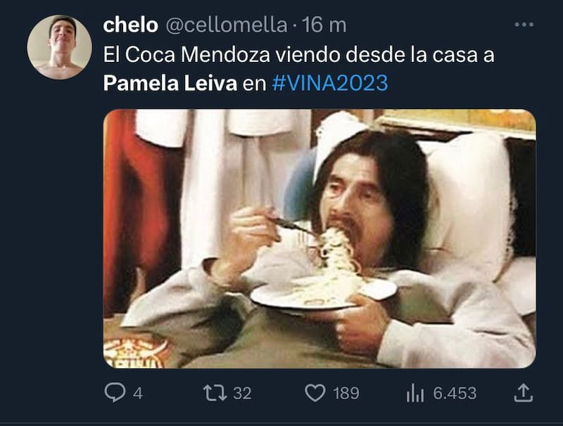 Otros recordaron la icónica escena de Coca Mendoza comiendo tallarines, asegurando que de esta forma estaba viendo a Pamela Leiva.