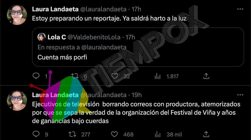“Ejecutivos de televisión borrando correos con productora, atemorizados por que se sepa la verdad de la organización del Festival de Viña y años de ganancias bajo cuerdas”, lanzó.