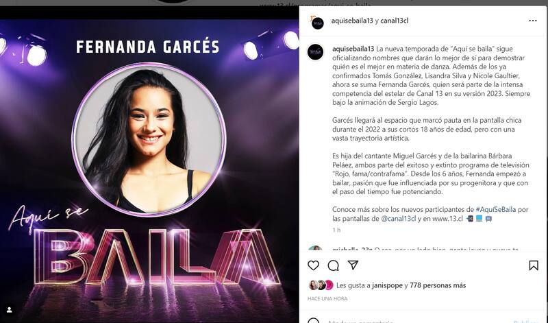 "Aquí se Baila" está tomando forma. Este 11 de enero, el programa de Canal 13 confirmó a su cuarta participante para su tercera temporada, la que aún no tiene fecha de estreno.