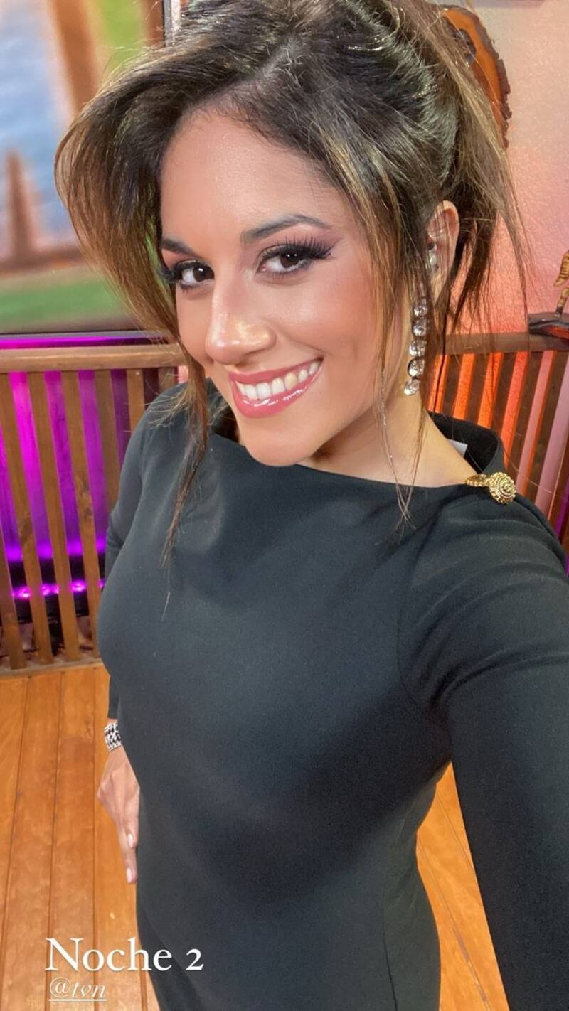 "Junto a mi asesora de imagen, Sofía Amunátegui, elegimos uno que es negro, cuello bote, cerrado, con un tajo en la pierna y una tela especial elasticada, por lo que es una segunda piel, forma toda la silueta", destaca la periodista, agregando que, peinado y maquillaje, están inspirados en una gran artista.