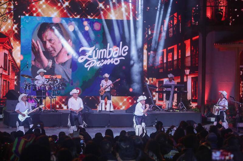 Fiel a su estilo, Zúmbale Primo llegó hasta el escenario del Patagual con un espectacular look. En esta pasada, eligieron lucir un conjunto conformado por una blusa blanca, un pantalón negro y su característico sombrero, también en tono blanco.