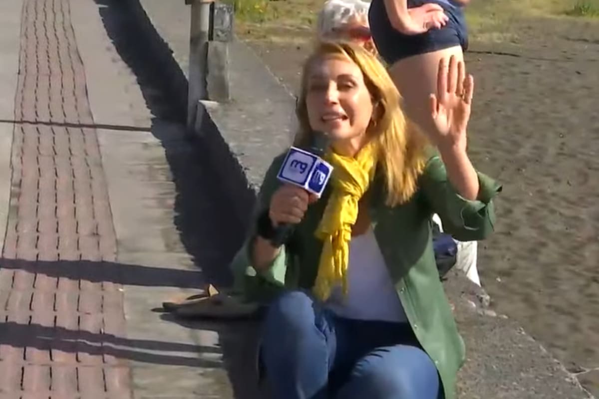Al comienzo del despacho, la animadora se fue a una popular cafetería del lugar, donde entrevistó a varios extranjeros que vinieron a pasar el verano a nuestro país. En esa instancia, ella bailó, bromeó y recorrió el sector costero en búsqueda de más personas que quisieran hablar con ella.