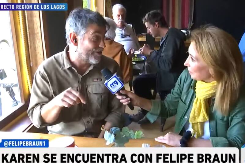 La reaparición del reconocido actor fue cuando la conductora del matinal de Mega se estaba trasladando hasta una cafetería muy conocida de Puerto Varas. "Está lleno adentro, se ve mucha mucha gente. Entraron ahora porque dicen que ya a llover, va a caer es aguita de verano. Es que no puede ser ¿Es o no es? ¡Felipe! Lo encontramos acá ¿Cómo estás?", comenzó diciendo.