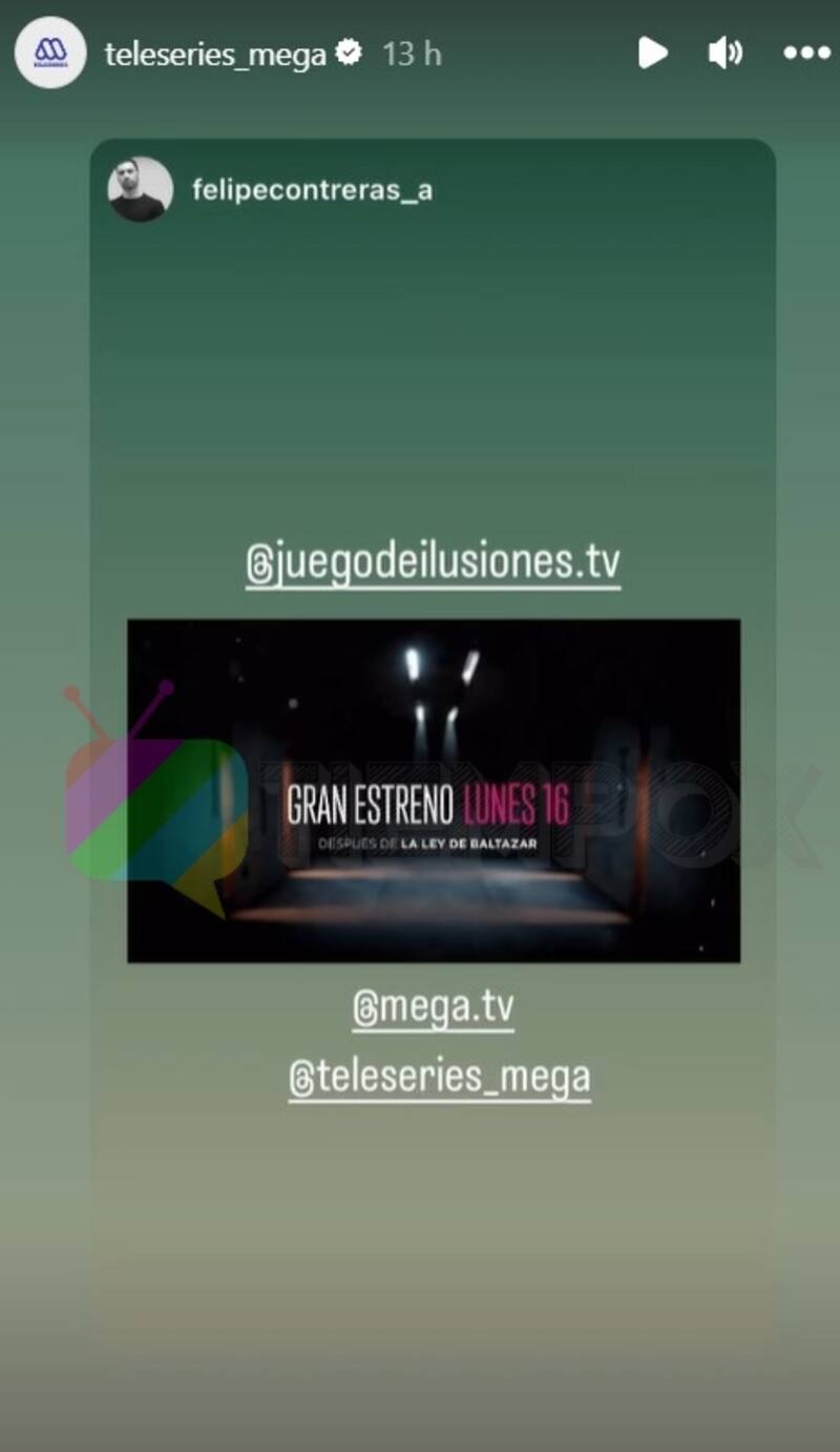 Luego de el término de "Hasta Encontrarte", en la franja de las 15.30 horas se emitirá "Juego de Ilusiones". Las grabaciones de la ficción comenzaron el pasado martes 11 de octubre y, en base a la información que entregó Mega en su cuenta de Instagram, su nueva producción tendrá su gran estreno el próximo lunes 16 de enero.