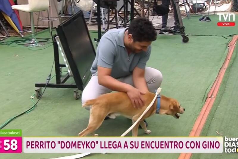 Minutos después el can fue trasladado hasta TVN y se encontró con el animador en el estudio de “Buenos Días a Todos” y de inmediato comenzaron a jugar.