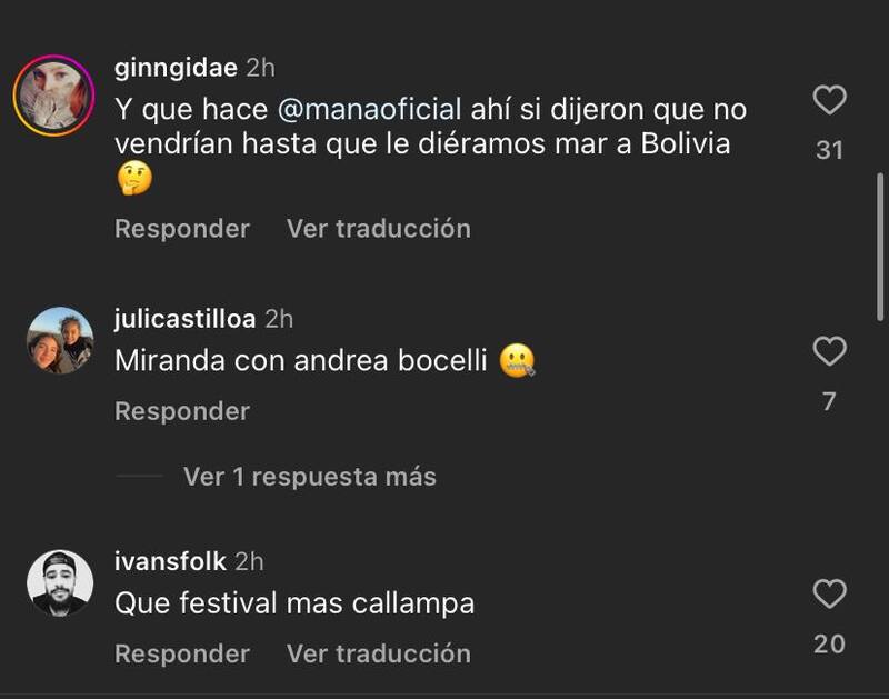 Y es que, alegan que el público de Miranda no es el mismo que el de Andrea Bocelli por ende, no entienden este orden. A su vez, Francisco Saavedra también subió la fotografía oficial del evento y de inmediato fueron cientos los que comentaron sobre esta situación.