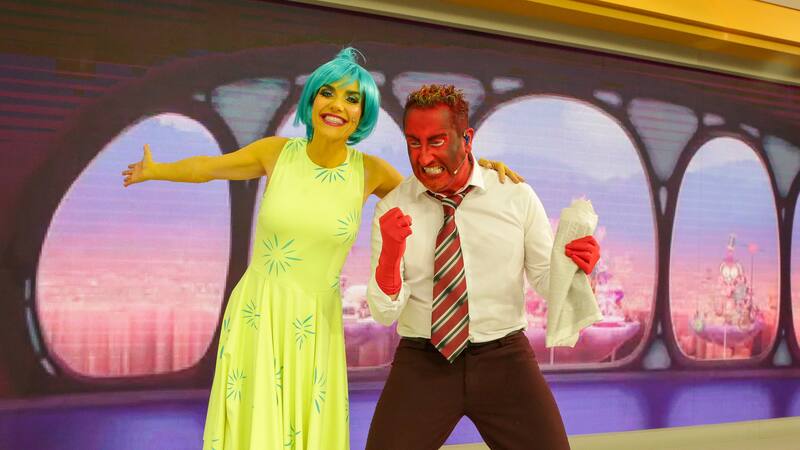María Luisa Godoy como Alegría, Eduardo Fuentes como Furia, Simón Oliveros como Vergüenza, Carla Jara como Desagrado, Daniela Castro como Tristeza, Jon Reyes como Miedo y hasta la doctora Carolina Herrera como Ansiedad, mostraron un gran talento interpretando a los personajes de la película de Disney.