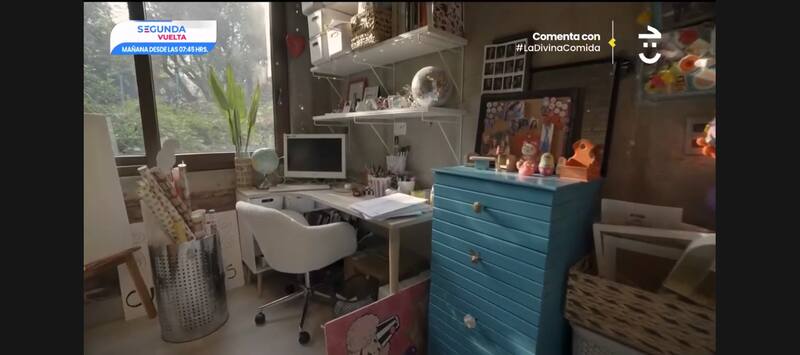 El segundo espacio que mostró en el programa es la oficina, en donde pinta sus cuadros. De hecho, según estipula su compañero, todos los que se ven colgados en la transmisión son de su autoría.