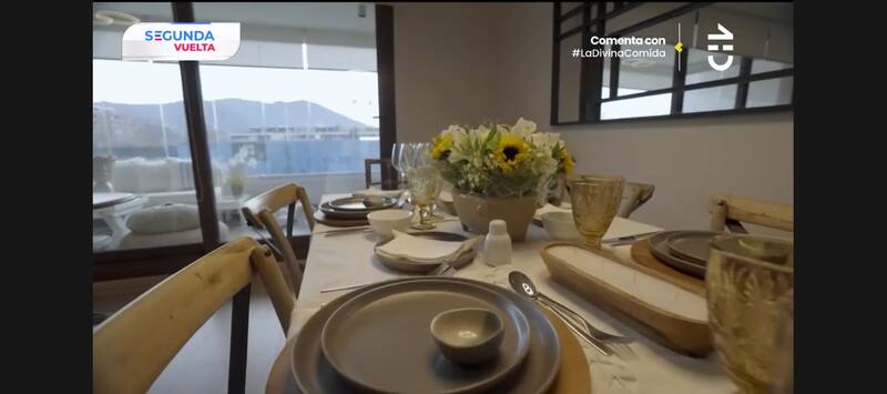 Luego el programa mostró su espació común, una habitación con una gran vista hacia la capital con un blanco predominante. La mesa ya se encontraba preparada para los invitados.