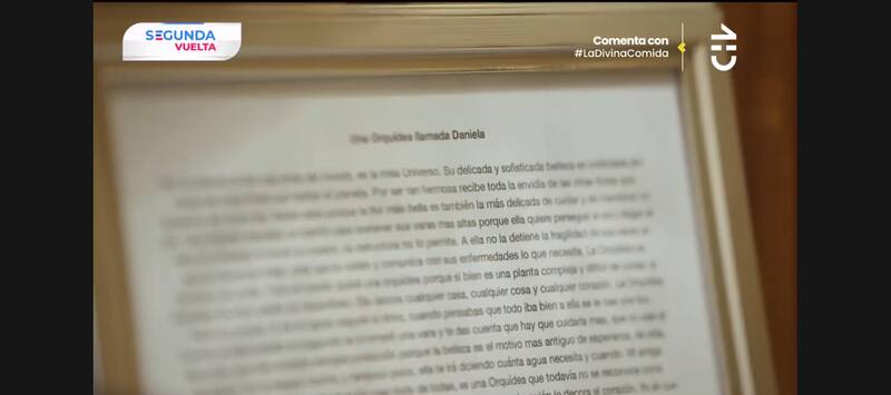 El primer objeto importante que mostró en el tour fue un texto de homenaje que recibió de su amiga cuando pasaba por un mal momento titulado “Una Orquídea Llamada Daniela”, la cual mantiene encuadrada frente a la puerta.