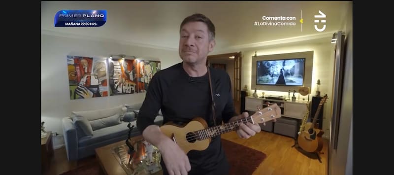 El intérprete de “Desde que te vi” finalmente mostró el espacio central de su hogar, el cual está decorado por el arte de “La Nonna”, como cariñosamente la llama, además de un gran televisor, varios instrumentos y un elegante sillón.