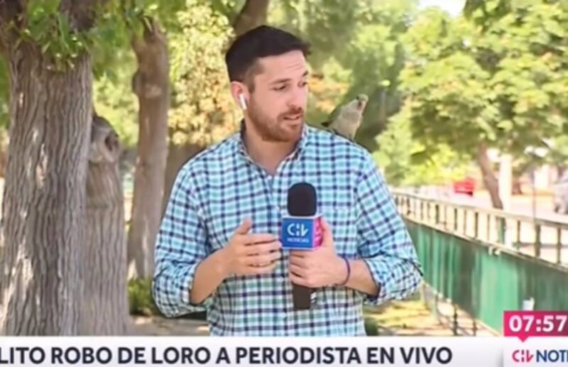 "Fue algo sorpresivo, estábamos haciendo un despacho en la comuna de La Reina y ahí siento una presencia en mi hombro y me di cuenta que es un loro", manifestó el periodista de Chilevisión al noticiero.