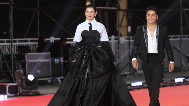 Por otro lado está Guarén, quien casi no puedo caminar por su cuenta debido a la densidad de su gran vestido rosado. Tuvo que pedirle ayuda a José Antonio Neme para poder avanzar.