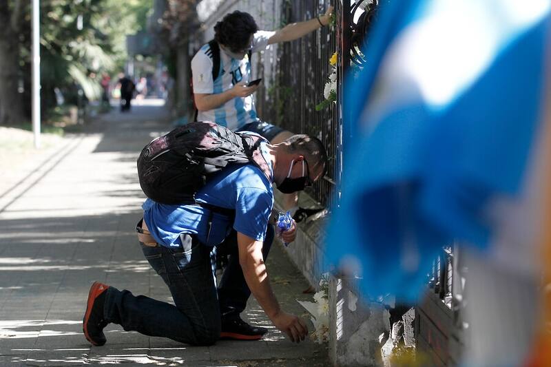 Pero la medida tomada por la representación diplomática, que se sumó a la que tomaron todas las embajadas y consulados trasandinos alrededor del mundo, no fue el único homenaje al "10" en la jornada, ya que diversos grupos de fanáticos del fútbol llegaron a las puertas de la embajada para dejar ofrendas y presentar respetos por Maradona.