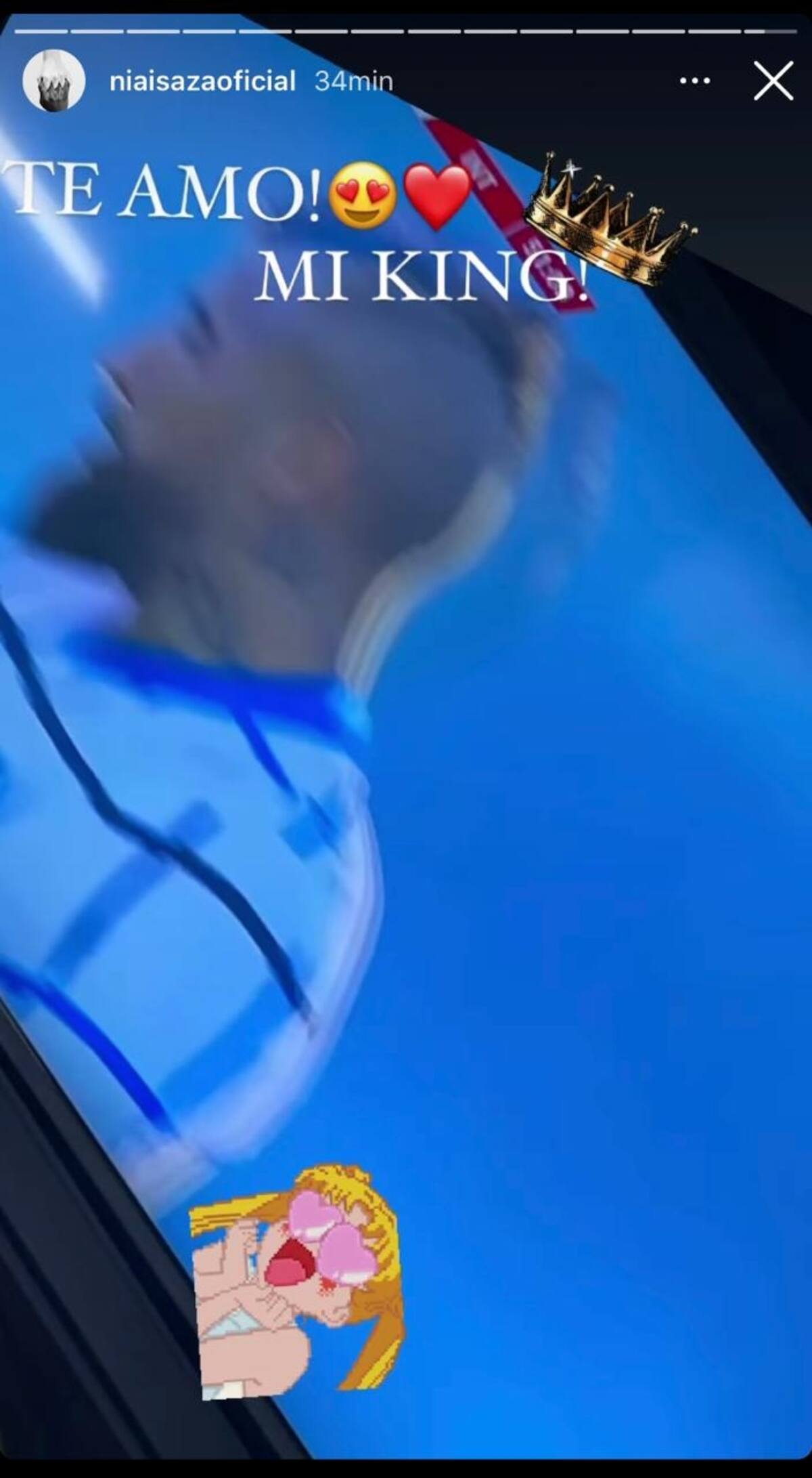 Esta vez, utilizó su historia de Instagram para publicar un Boomerang donde se ve la pantalla de la televisión y justo enfocan en primer plano al jugador. "¡Te amo! ¡Mi king!" escribió junto a un sticker de la caricatura Sailor Moon con ojos de corazón.