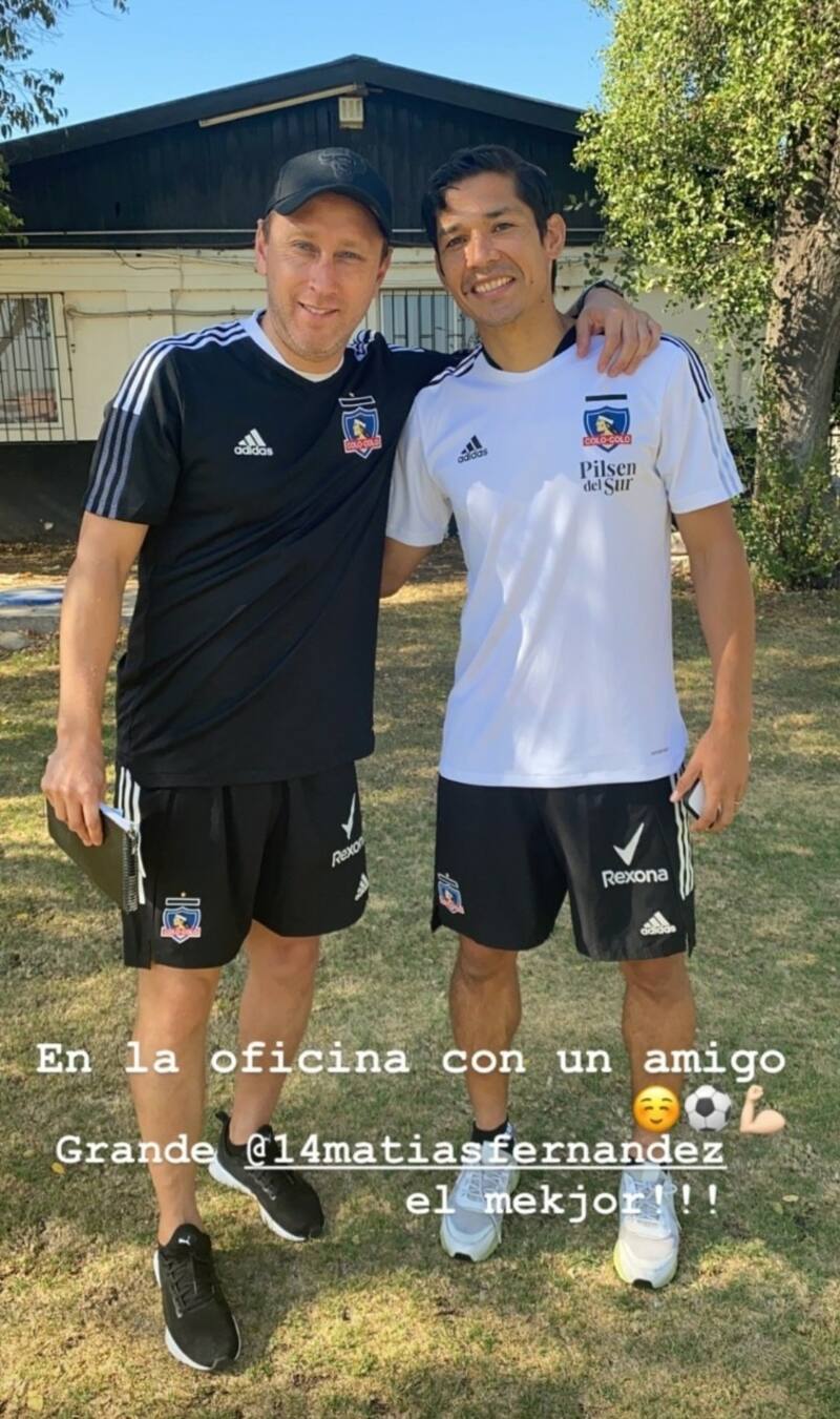 Luis Mena, ex futbolista y figura de Colo Colo y actual entrenador de la rama femenina del equipo, posteó esta tarde una fotografía junto a uno de los jugadores del plantel, Matías Fernández, y le escribió unas palabras.