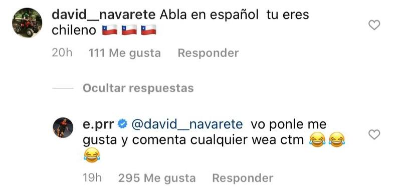 "Habla en español, tú eres chileno", le escribió uno de los usuarios, a lo que Roco respondió: "Vo' ponle me gusta y comenta cualquier hue... conch...", junto a unas caritas riéndose.