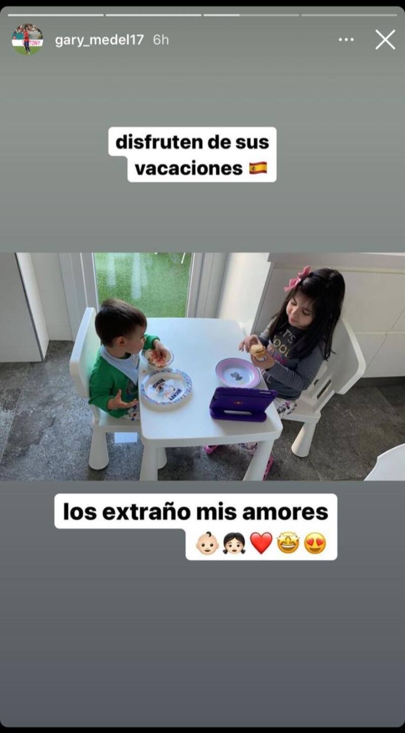 El futbolista le dedicó un mensaje a los más pequeños de su familia, que están en España junto a la periodista Cristina Morales de vacaciones. "Disfruten de sus vacaciones, los extraño mis amores" escribió Medel en una fotografía donde se le ve a los dos pequeños comiendo.