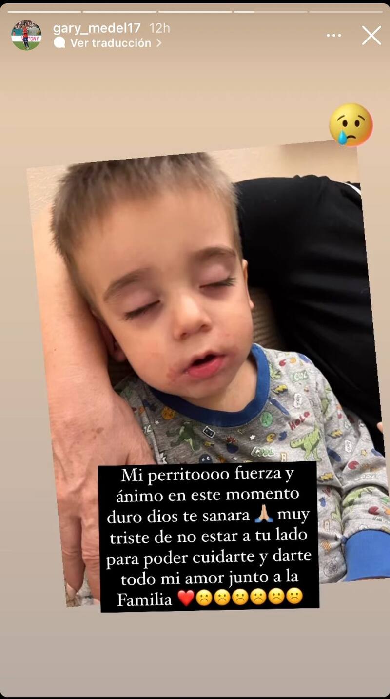 El hijo menor de Gary, Danilo, lleva unos días enfermo, como lo aclaró la española y esposa del chileno, Cristina Morales. El futbolista posteó una fotografía del niño en su cuenta de Instagram para enviarle ánimos. "Mi perrito fuerza y ánimo en este momento duro, Dios te sanará. Muy triste de no estar a tu lado para poder cuidarte y darte todo mi amor junto a la familia", escribió hace unas horas el jugador del Bologna.
