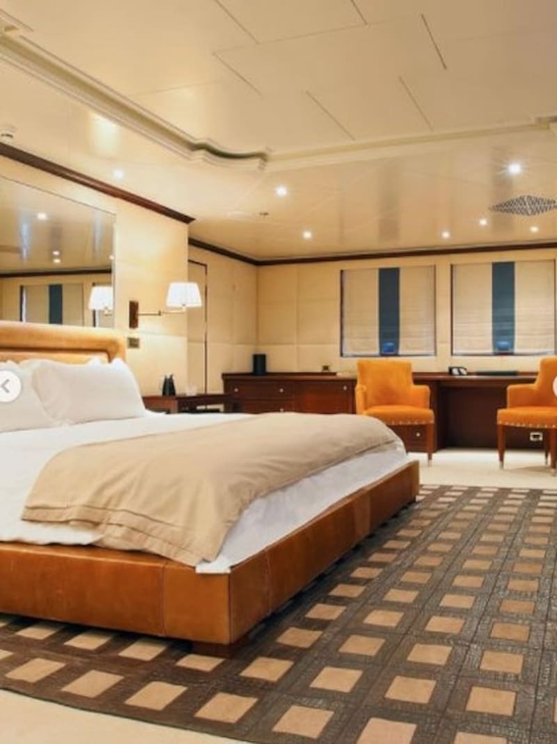 El yate se llama Force Blue mide 63 metros de largo y es el 78º más grande del planeta, en sus instalaciones cuenta con seis camarotes para 12 huéspedes, además de una sala de cine, un salón de baile, sala de juegos, ascensor, comedor exterior con asientos de 22 a 60 invitados y la posibilidad de armar cócteles para hasta 350 invitados.