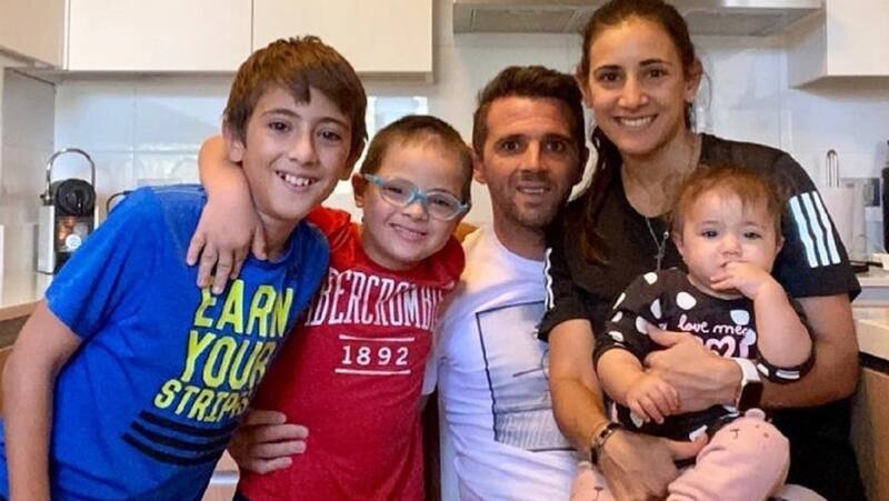 En la segunda toma, están los dos junto a sus tres hijos, Santino, Valentín y Emma, la más pequeña. Después de su paso por Brasil, China y Argentina, el jugador volvió a vestirse con la camiseta de la Universidad de Chile para disputar el torneo 2020, que será el último de su carrera futbolística.