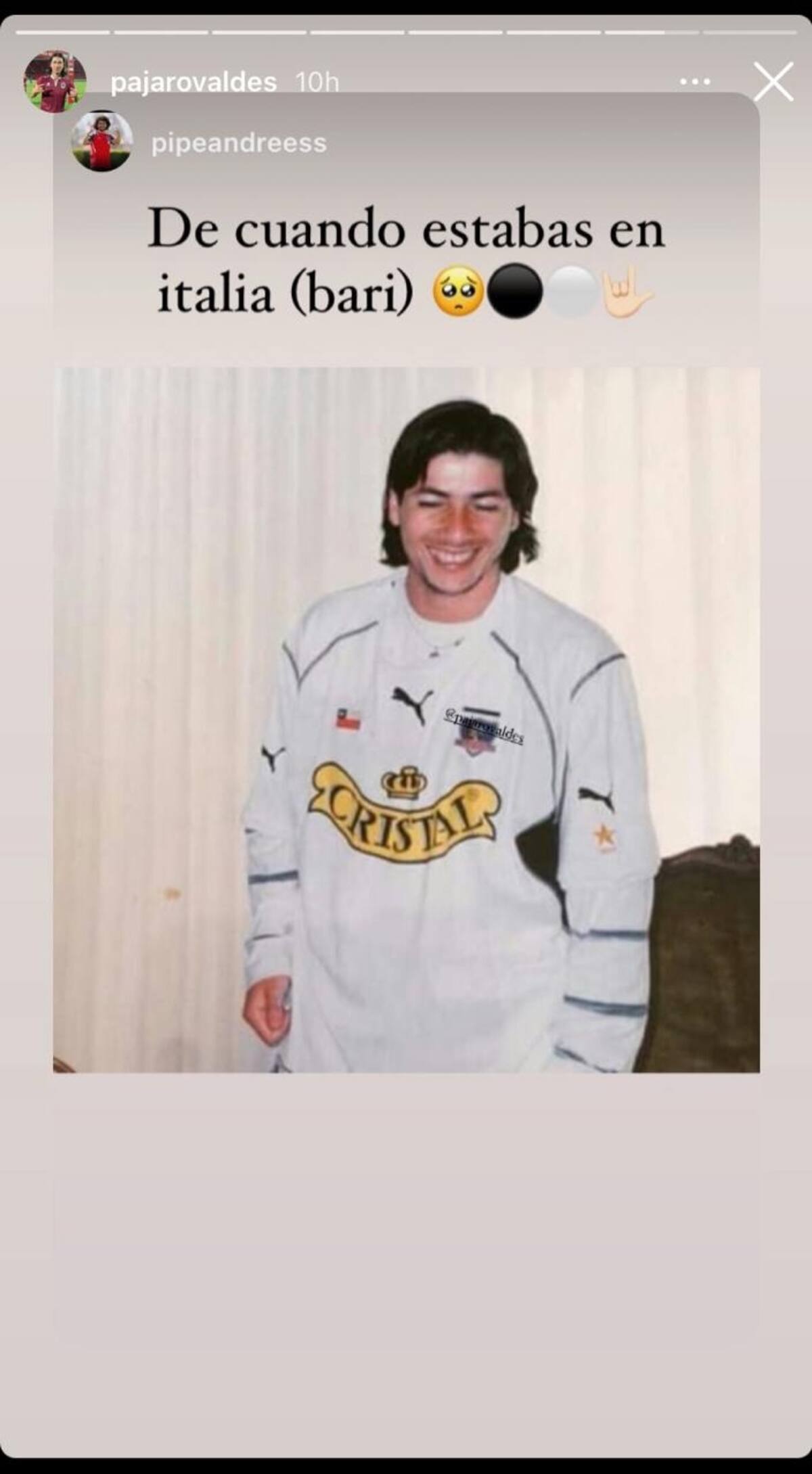 En su cuenta oficial de Instagram, el "Pajarito" reposteó la historia de un fanático, donde aparece una foto antigua suya que decía "De cuando estabas en Italia".
