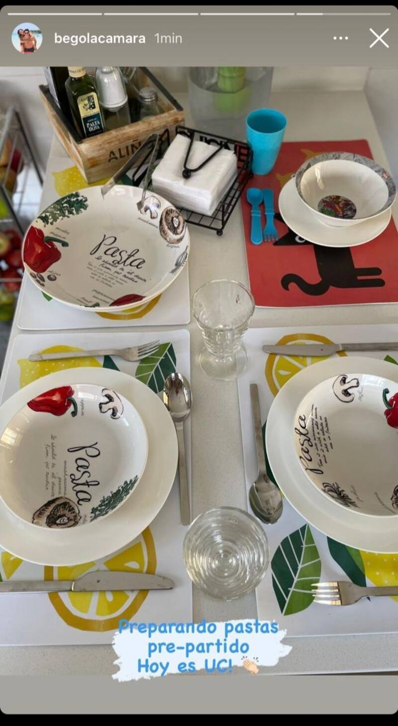 Begoña Lacámara, esposa de Parot, compartió con sus seguidores en Instagram que ya estaba preparando el almuerzo de su familia con ánimo de partido. "Preparando pastas pre-partido ¡Hoy es UC!", escribió sobre una fotografía donde aparecen los platos sobre la mesa.