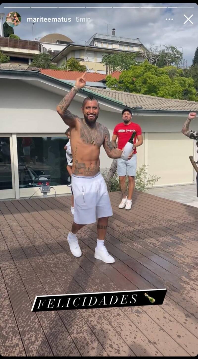 Además, la ex esposa del jugador y madre de sus tres hijos, Marité Matus, publicó en su Instagram un video de Arturo celebrando, ya que se encuentran juntos en Italia. En las imágenes se le ve a él saltando junto a sus hijos y derramando champaña. "Felicidades", escribió.