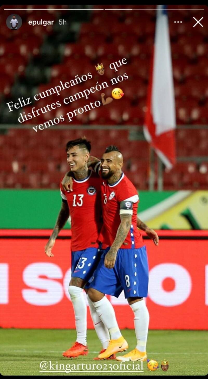 Entre los saludos de los compañeros que ha tenido se destacan los de sus "compadres" en la Selección Chilena, Erick Pulgar, Mauricio Pinilla, Gary Medel y Eduardo Vargas, quienes le escribieron durante la mañana. "Hermano mío te deseo un feliz cumpleaños y te deseo todo lo mejor junto a tu familia!! Te quiero mucho amigo", le escribió Medel en su cuenta de Instagram.