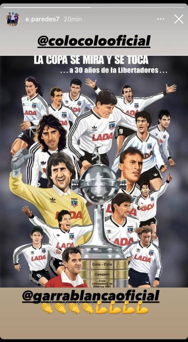 Esta tarde, el jugador de Coquimbo Unido Esteban Paredes, compartió en sus redes sociales una especial imagen para sumarse a la conmemoración de los 30 años de la Copa Libertadores de Colo Colo.
