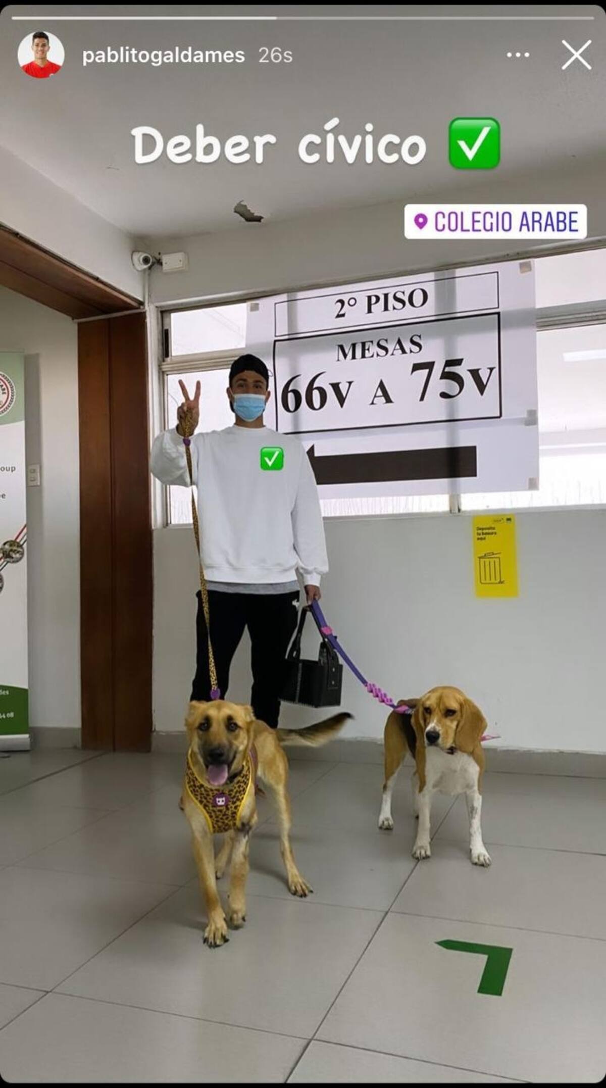 Esta mañana, el jugador de La Roja Pablo Galdames llegó a cumplir con su deber cívico junto a sus dos mascotas y decidió capturar el momento en las redes sociales.