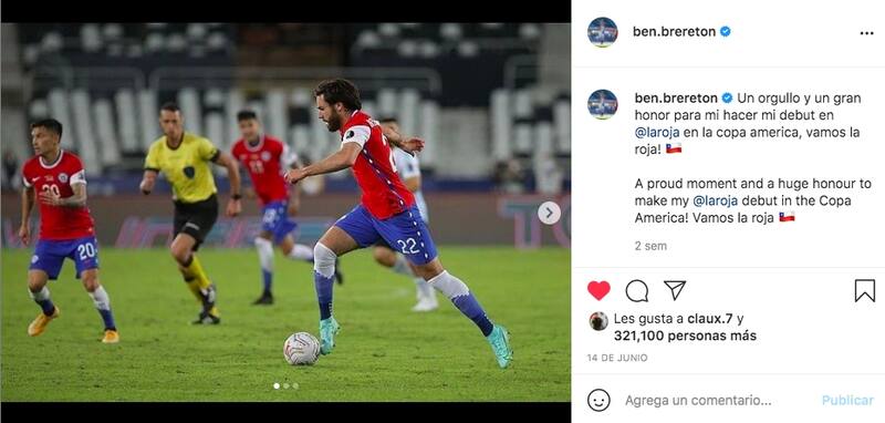 Una de las sorpresas que destacó en la Copa América y dejó felices a los hinchas de la selección, fue Ben Brereton, el joven inglés de madre chilena que fue nominado por "Machete" para formar parte del plantel. Como Alexis Sánchez estuvo lesionado, tuvo la oportunidad de debutar e ir en la oncena titular durante el torneo continental. En las redes sociales se convirtió en una estrella tras su paso por Chile, ya que se transformó en un ídolo para los usuarios, quienes llenan sus publicaciones de comentarios alenatadores. "Te queremos mucho" y "Confío en ti", son algunos de los comentarios de sus fanáticos. Brereton alcanzó más de 834 mil seguidores tras su debut.