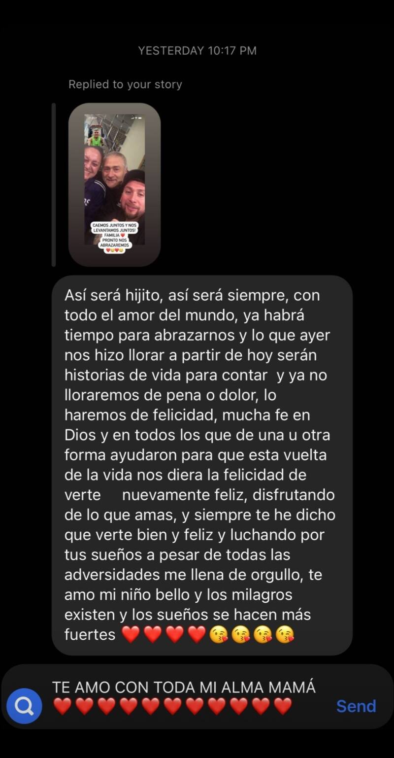 Pero todo eso es parte del pasado y Castillo volvió en gloria y majestad. En su cuenta de Instagram, el "cruzado" jugador compartió múltiples mensajes de felicitaciones, pero uno destacó por sobre el resto: el de su madre.
