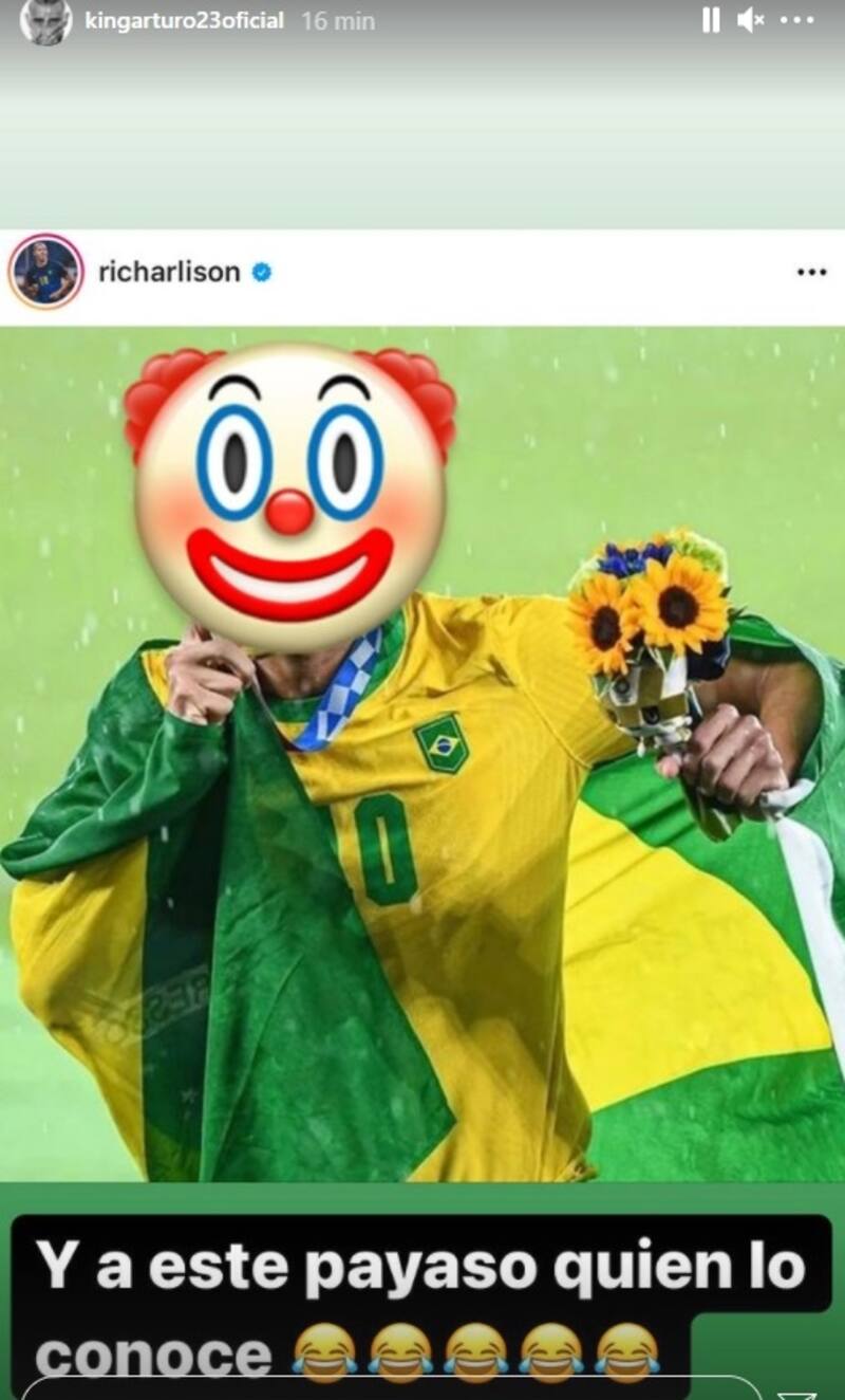 Fiel a su estilo, el "King" no se quedó callado y utilizó una imagen del mismo Richarlison con un ícono de payaso sobre su rostro preguntándose : "Y a este payaso quién lo conoce".