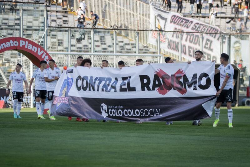 Colo Colo recibió de Visita a Ñublense esta tarde en el Estadio Monumental. Al momento de entrar al campo de juego, el plantel del "Cacique" apareció con un particular lienzo creado por el Club Social que hace alusión a la discriminación racial.