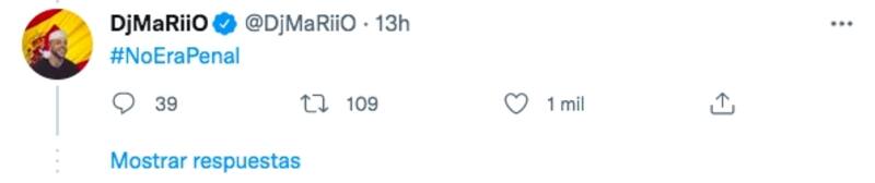 "#NoEraPenal", respondió a uno de los comentarios de su publicación, donde había celebrado el gol, vistiendo la camiseta de Colo Colo y un fanático de los azules le escribió que era "un robo". Rápidamente los usuarios comenzaron a debatir sobre el tema, donde algunos apoyaron al influencer mientras que otros criticaron su comentario.