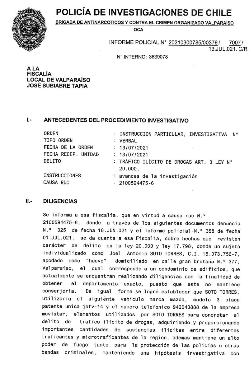 En el informe donde se acusa al exdelantero, elaborado por la Policía de Investigaciones, se narra que se dedicaba a traficar las sustancias prohibidas en un auto Mazda, el mismo que era utilizado para abastecer a otros microtraficantes de la zona.