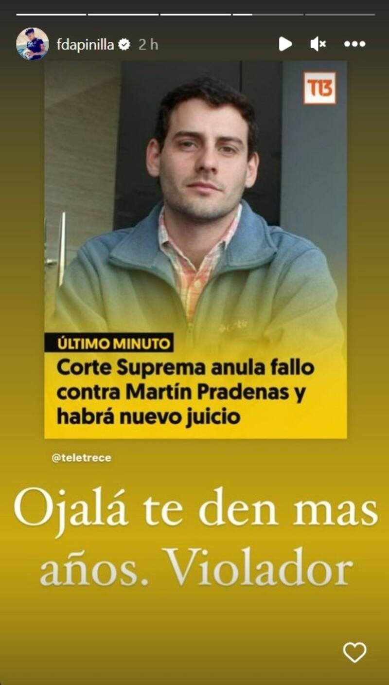 La capitana de la U Femenina, Fernanda Pinilla, reaccionó a la nulidad que se realizó en el juicio contra Martín Pradenas, hombre que en primera instancia había sido sentenciado a 20 años de cárcel por violación y abuso sexual en contra de Antonia Barra.