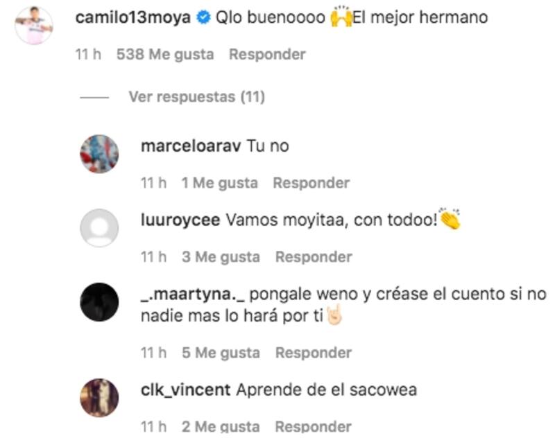 "Saque molde", "Vamos Moya ponte vio", "Tú también eres bueno hermano créete el cuento no más, entrena entrena", "Aprende de él", "Este es tu año loco, tápale la boca a todos los que te tiran pa abajo", "Dale Moyita póngase vio, recupere el nivel" y "Esfuérzate un poquito, no cualquiera viste la camiseta de la U", fueron algunos de los comentarios de los fanáticos sobre Camilo Moya.